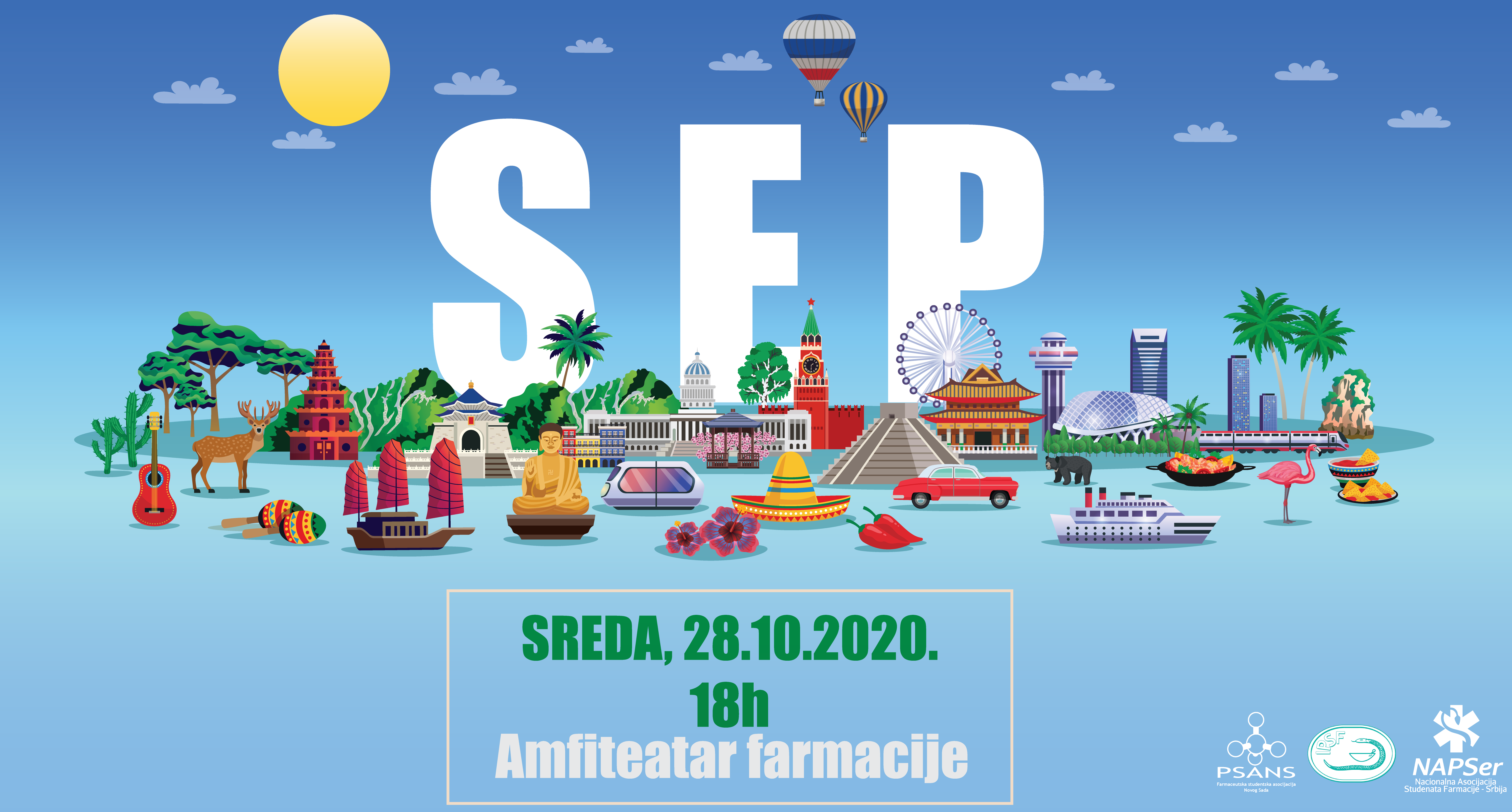 Ukoliko želite da priredite sebi jedinstveno iskustvo koje obuhvata izuzetnu stručnu praksu, upoznavanje druge kulture i jezika, kao i nezaboravne uspomene i prijateljstva, dođite da čujete nešto više o SEP-u! Moći ćete da saznate sve što vas zanima o samom projektu: način prijavljivanja, koncept ove studentske razmene, kao i iskustva kolega koji su učestvovali. Vidimo se u amfiteatru Farmacije u sredu 28.10. u 18h.