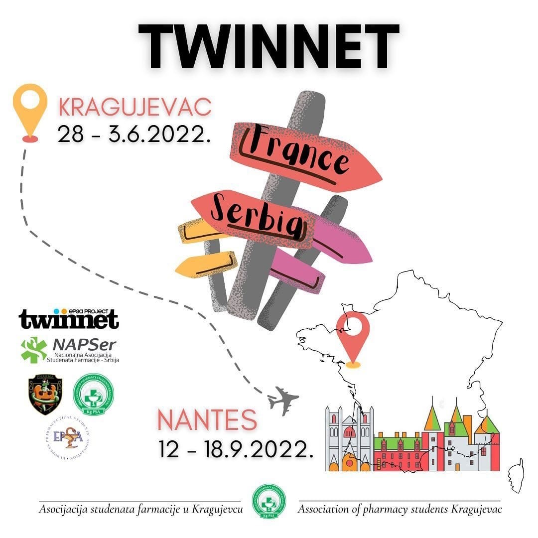Ove godine KgPSA organizuje Twinnet razmenu sa kolegama iz Nanta. Prvi deo razmene će se održati u Kragujevcu u periodu od 28. maja do 3. juna. Drugi deo razmene će se održati u septembru, kada ćemo mi posetiti njih.