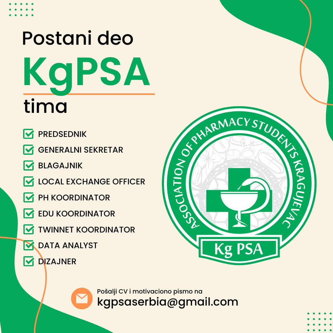Obaveštavamo vas da su otvoreni izbori za novi KgPSA tim za 2023. godinu. Svoj CV i motivaciono pismo možete poslati na mail: This email address is being protected from spambots. You need JavaScript enabled to view it.. Konkurs je otvoren do srede, 21.12.2022. do 21h.