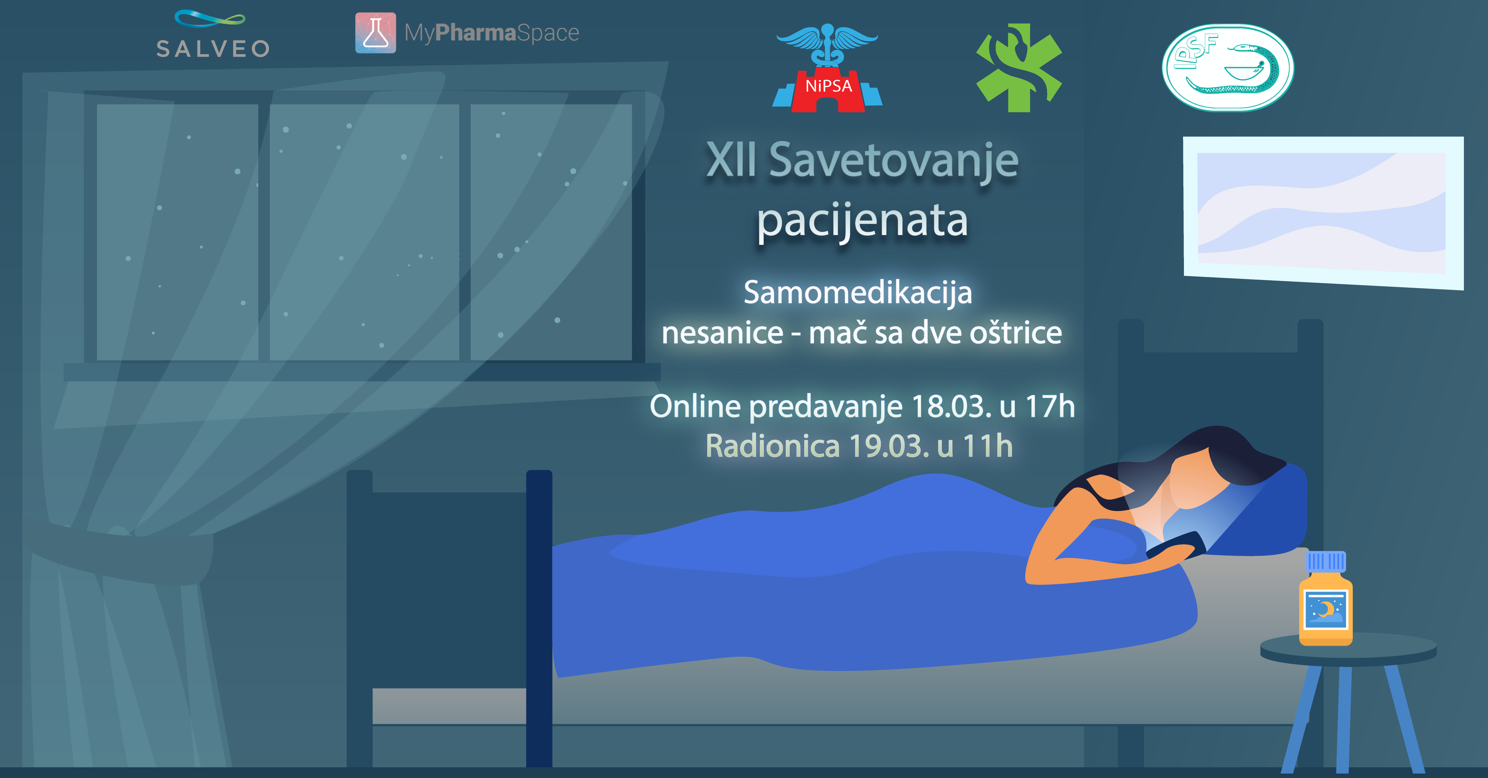 Asocijacija Studenata Farmacije - Niš (NiPSA) vas sa zadovoljstvom poziva da učestvujete na 12. Savetovanju pacijenata čija je tema ,,Samomedikacija nesanice - mač sa dve oštrice".