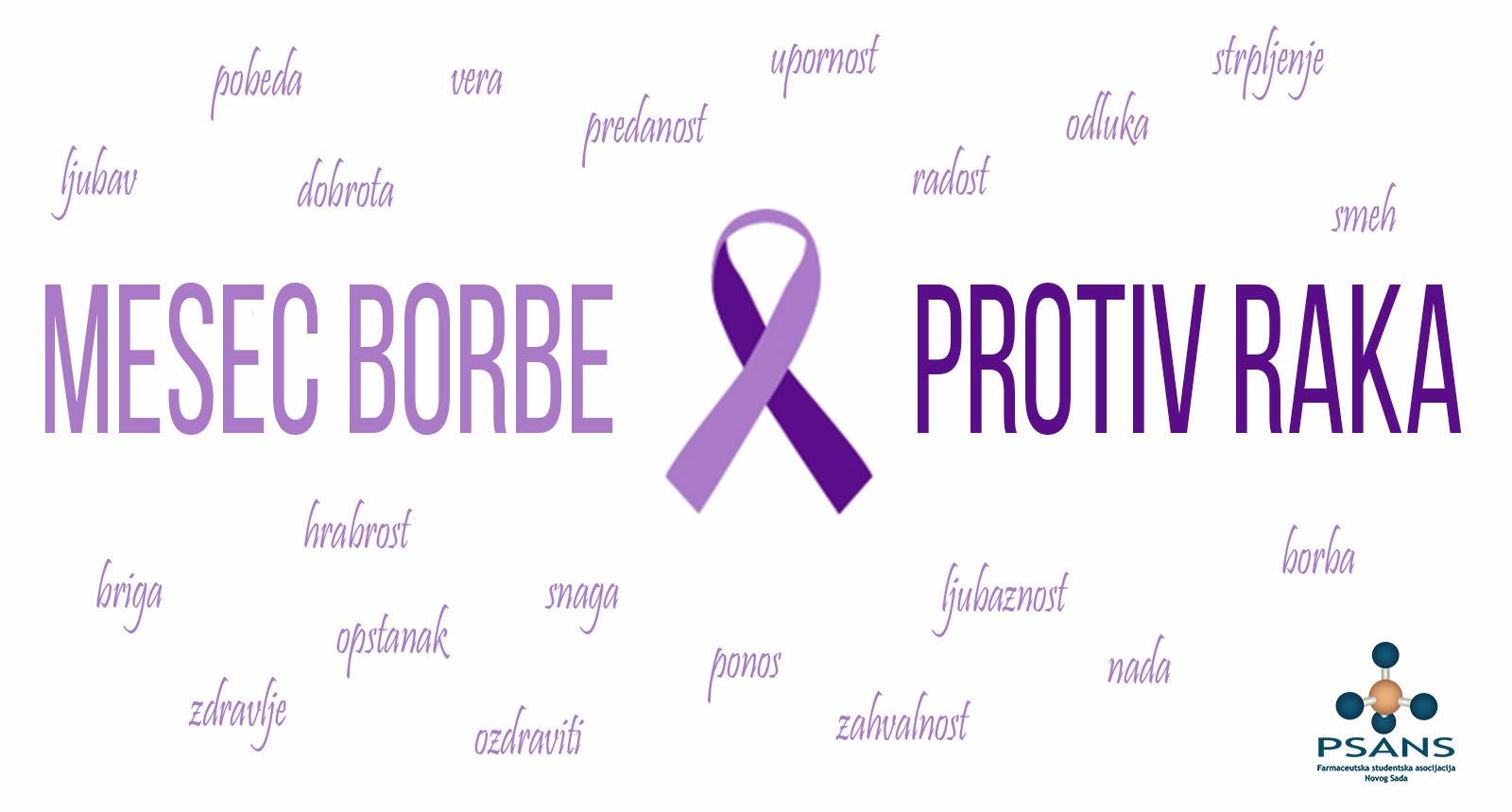 Povodom meseca borbe protiv raka, PSANS u saradnji sa Zavodom za zdravstvenu zaštitu studenata organizuje akciju u studentskom kampusu. 20.03., u periodu od 11h do 13h, delićemo flajere, pričati sa studentima na temu raka grlića materice i debelog creva. Takođe jedna od tema će biti i na koji način prevenirati nastanak maligniteta. Svi zainteresovani koji žele da učestvuju u akciji mogu se javiti putem mejla This email address is being protected from spambots. You need JavaScript enabled to view it. ili preko facebook profila.
