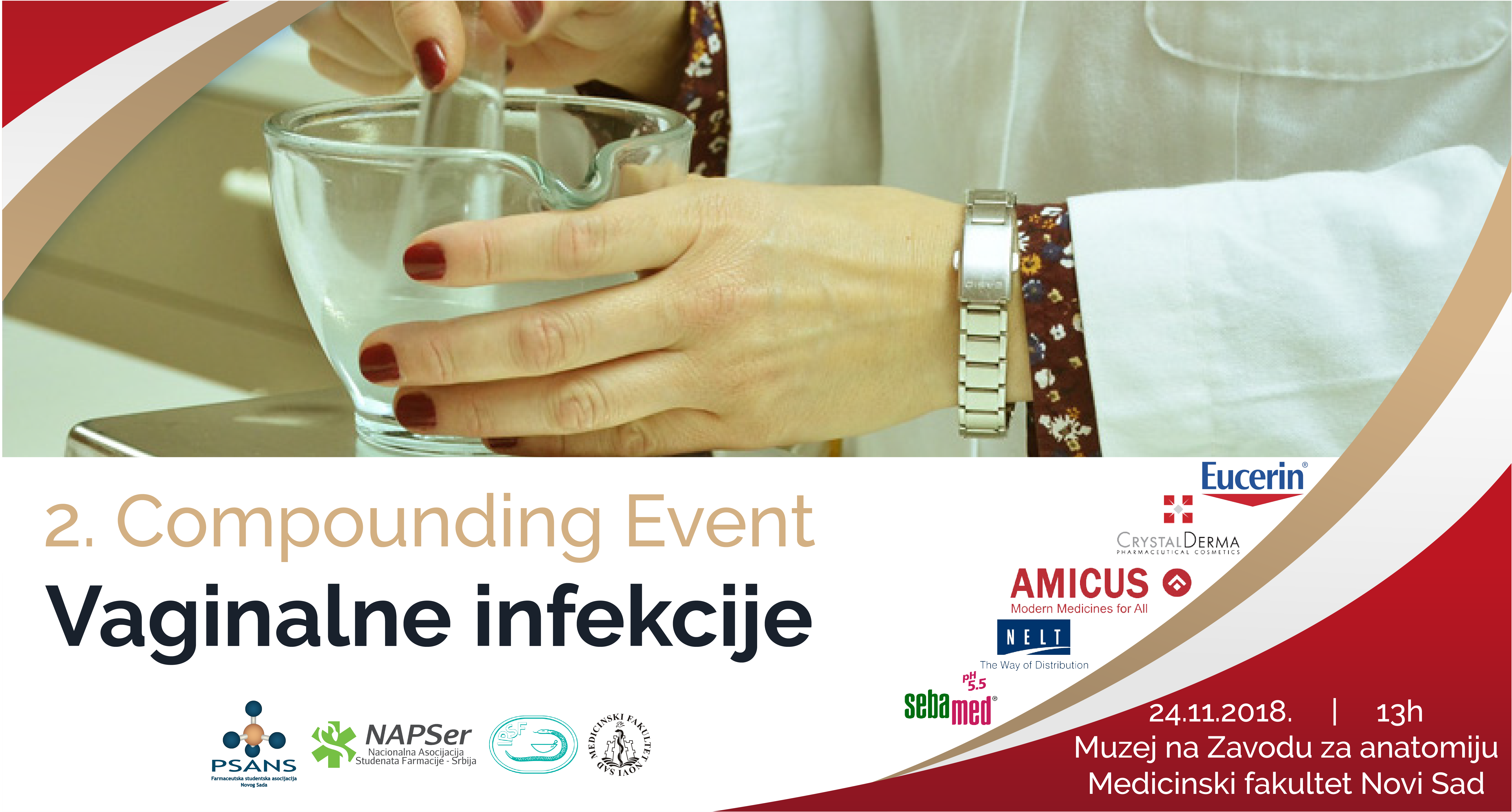 Sigurni smo da će vest o tome da je Compounding Event postao redovan projekat naše kancelarije obradovati sve vas koji želite da usavršite svoje veštine u laboratoriji i uživate u istom. Stoga vas PSANS poziva na 2. Compounding Event sa temom “Vaginalne infekcije” koji će se održati u subotu, 24.11.2018. u muzeju na Zavodu za anatomiju Medicinskog fakulteta u Novom Sadu sa početkom u 13h.