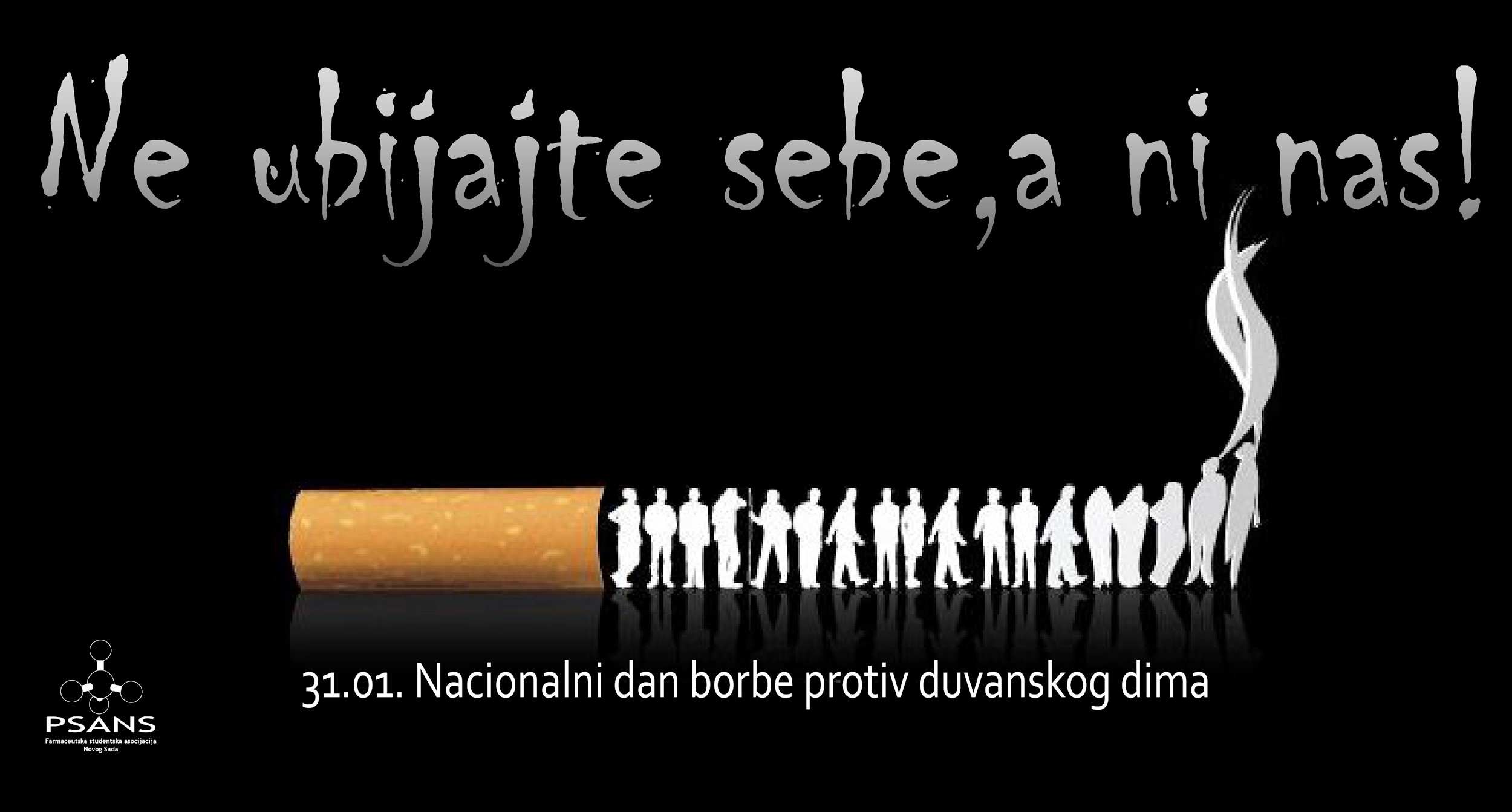 Povodom Nacionalnog dana borbe protiv duvanskog dima, PSANS u saradnji sa Zavodom za zdravstvenu zaštitu studenata organizuje akciju pod sloganom “Ne ubijajte sebe, a ni nas!”.