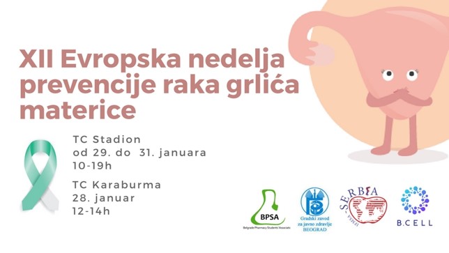 NiPSA u saradnji sa IFMSA – Serbia LK Niš i Institutom za Javno zdravlje obeležava Evropsku nedelju prevencije raka grlića materice 29. januara, u periodu od 12h do 13:30h na četiri lokacije u gradu: Studentski dom kod Medicinskog fakulteta, Studentski klub Medicinskog fakulteta, Filozofski fakultet, Institut za Javno zdravlje.